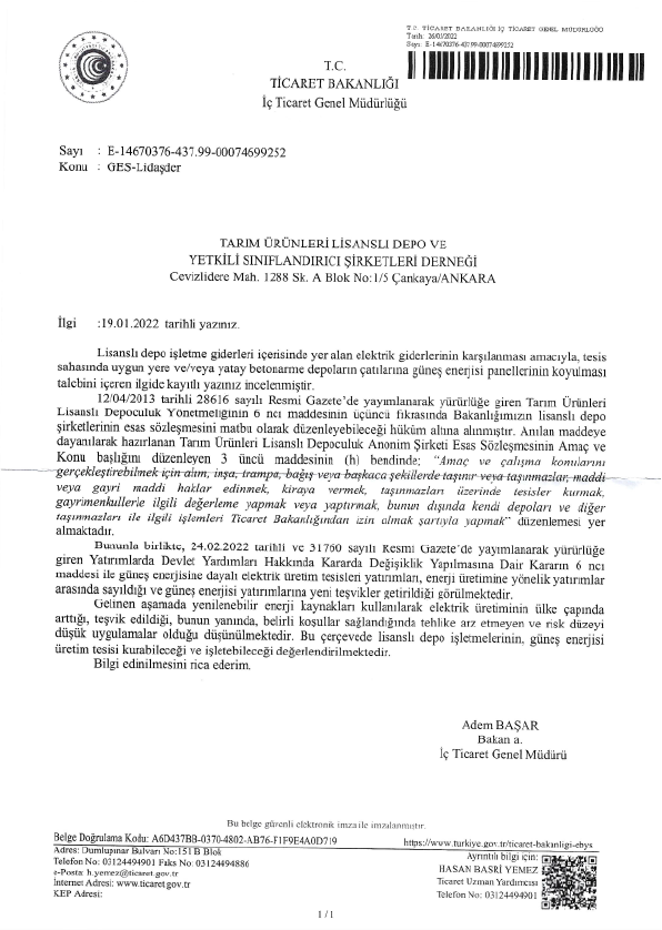 LİSANSLI DEPO GES İZNİ
